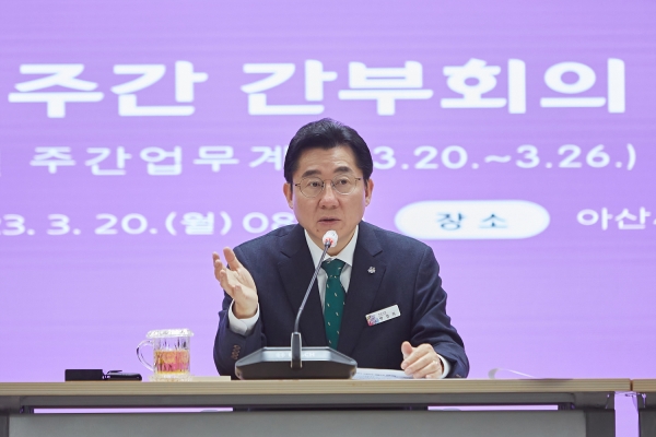 한편 이날 박경귀 시장 등은 봄철 산불 예방에 총력을 기울여줄 것을 당부하고 한 달 앞으로 성큼 다가온 ‘아트밸리 아산 제62회 성웅 이순신 축제’ 홍보 방안, 청년농부 사관학교 격인 경북 상주 스마트팜 혁신밸리에 스마트팜 농법에 관심이 많은 지역 청년농부들을 위한 교육 프로그램 만들기 등에 대해 논의했다.