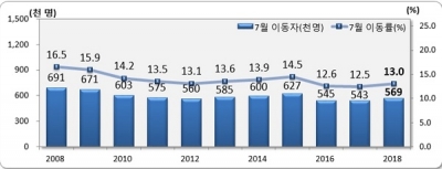 [충청뉴스Q] 2018년 7월 국내인구이동 결과 전국적으로 주택 거래가 늘면서 국내 인구이동자 수가 증가한 것으로 나타났다.