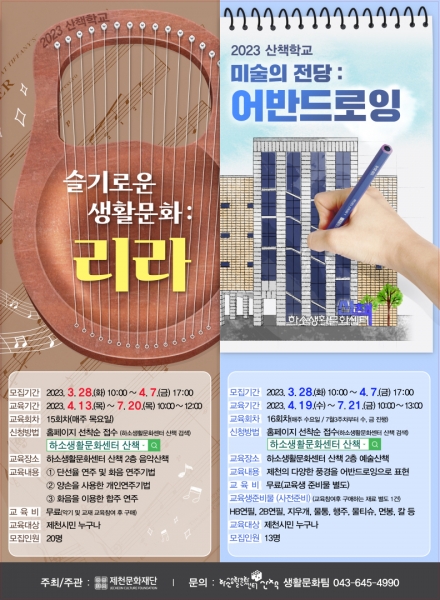 [충청뉴스큐] 제천문화재단이 다양한 연령층의 시민 예술 감수성 향상을 위해‘2023 하소생활문화센터 산책학교’수강생 모집에 나섰다.