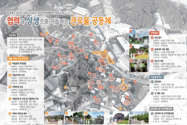 [충청뉴스큐] 음성군은 삼성면 대정1리 마을이 대통령 직속 국가균형발전위원회가 주관하는 ‘2023년 취약지역 생활여건 개조사업’ 대상지로 선정됐다고 27일 밝혔다.