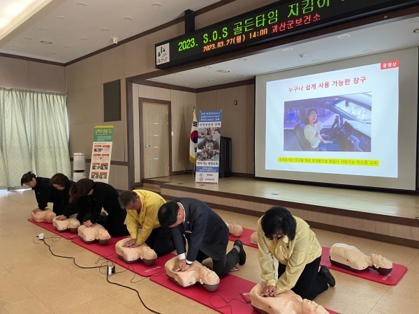 [충청뉴스큐] 충북 괴산군 보건소는 응급의료상황에 대비해 괴산군의회 의원 및 직원들을 대상으로 27일 ‘S.O.S 골든타임 지킴이 교육’을 실시했다.