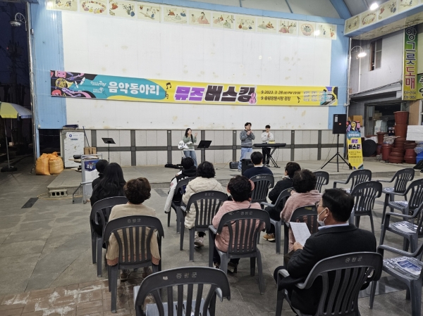 [충청뉴스큐] 증평군은 증평장뜰시장 다목적광장에서 28일 오후 7시 침체된 전통시장 활성화와 장뜰시장 다목적광장을 문화예술 향유 공간으로 활용하기 위해 첫 버스킹 공연을 열었다.