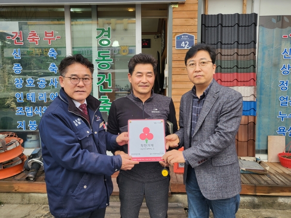 [충청뉴스큐] 영동군 황간면 지역사회보장협의체는 황간면내 지역업체 햇님달님식당, 뚝방커피, 경동종합건축를 찾아 '착한가게'현판을 전달했다고 29일 밝혔다.