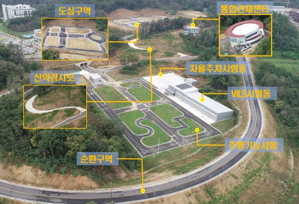 신호교차로·보행자도로 등 필수적인 자율차 시험시설은 물론 공사구간·BRT 전용도로·갓길주차구역 등 다양한 도심환경을 재현해 모빌리티 서비스 개발·실증에 적합한 시험 시설을 갖췄다.