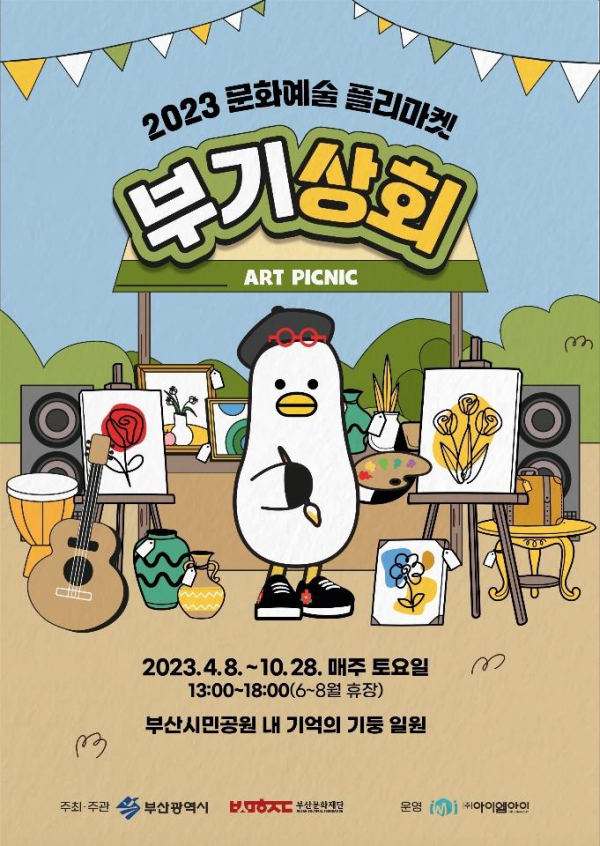 [충청뉴스큐] 부산시는 오는 4월 8일 토요일을 첫 시작으로 10월 말까지 매주 토요일 부산시민공원에서 문화예술 플리마켓 ‘부기상회’를 개최한다고 밝혔다.