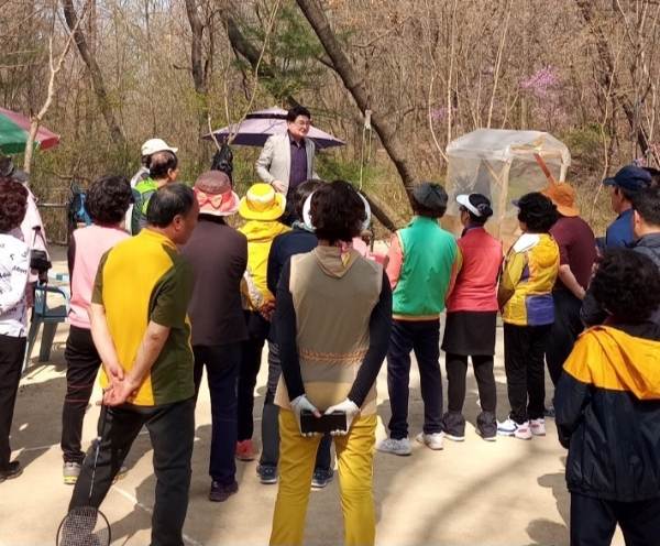 홍국표 의원은 회원 대부분이 70세 이상 어르신인 개나리배드민턴클럽의 회원 30여명과 함께 초안산 근린공원 일대에 무단투기 된 쓰레기와 불법 설치된 홍보물 등을 수거했다.