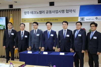 이날 협약식에는 박재만, 박태희 의원을 비롯해 이재명 경기도지사, 정성호 국회의원, 김대순 양주시 부시장, 이헌욱 경기도시공사 사장 등 20여명이 참석, 양주 테크노밸리 조성을 위해 업무를 분담하고 협력을 강화하기로 했다.