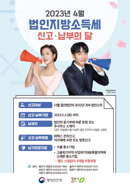 [충청뉴스큐] 청주시에 사업장을 둔 법인은 오는 5월 2일까지 법인지방소득세를 신고·납부해야 한다.