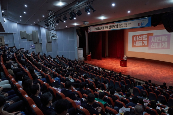 이날 박 시장은 아산 온천산업 부흥의 주춧돌이 될 행정안전부 주최 온천산업박람회 개최지 선정, 국회에서 진행된 미군 이전 평택지원법 개정 관련 토론회 개최, 국내 최고 문화예술 전문가들로 구성된 ‘아트밸리 아산 포럼 발족식’, 청년의 눈으로 시정 정책 방향과 아이디어를 청취하기 위해 순천향대학교에서 진행된 ‘공감 Talk’, 대만에서 진행된 2023 스마트시티 서밋&엑스포 발표자 참석 등 지난 3월 아산시 주요 이슈를 열거하며 담당 공무원들을 격려했다.