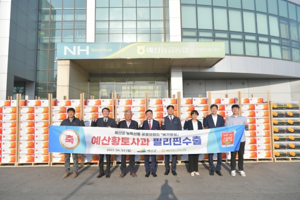 군은 지난 3일 예산농산물유통센터에서 최재구 군수, 권오영 예산능금농협 조합장, 황진하 NH농협 예산군지부장 및 군 관계자 등이 참석한 가운데 수출 출하식을 갖고 예산황토사과 5톤, 배 6.3톤을 필리핀으로 수출했다.
