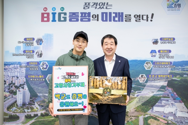 증평을 대외적으로 널리 알려주는 데다 이번엔 기부로 증평을 응원해 준 박군께 다시 한번 감사드린다”고 말했다.