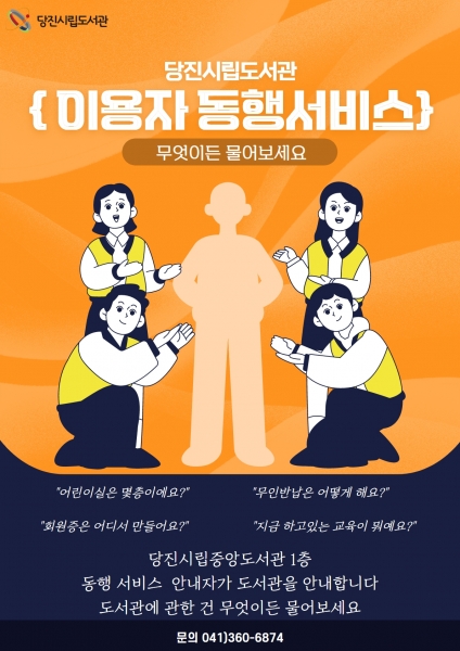 당진시립도서관 관계자는 “이용자 동행 서비스 시행을 시작으로 도서관 서비스에 어려움을 겪는 이용자들을 위한 맞춤형 서비스를 제공해 이용자에 대한 편의를 높이고 도서관 서비스 발전에 기여할 수 있도록 노력하겠다”고 밝혔다.
