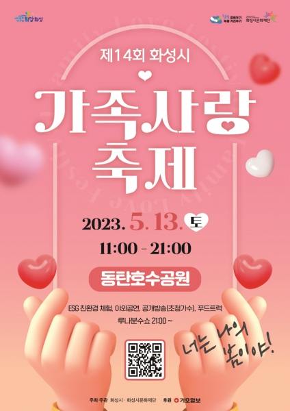 [충청뉴스큐] 화성시문화재단은 시민화합형 축제인 ‘제14회 화성시 가족사랑축제’를 5월 13일 11시부터 오후 9시까지 동탄호수공원에서 개최한다.