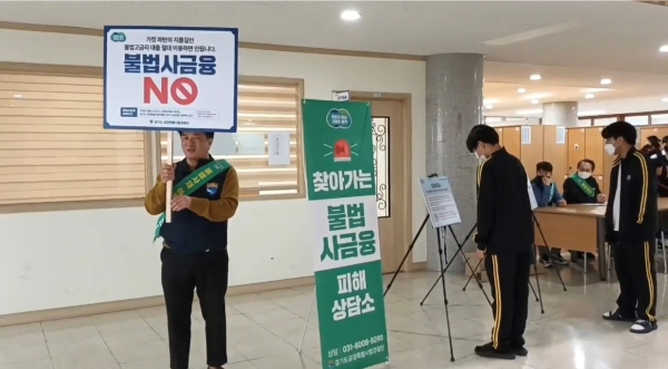 가정통신문 및 누리집을 활용해 학생들과 교직원 2만 5천여명을 대상으로 안내했고 학교 내 학생들이 자주 모이는 장소를 찾아가 상담소를 설치해 학생 128명과 불법 사금융 이야기를 나누며 질의응답을 주고받는 방식으로 진행했다.