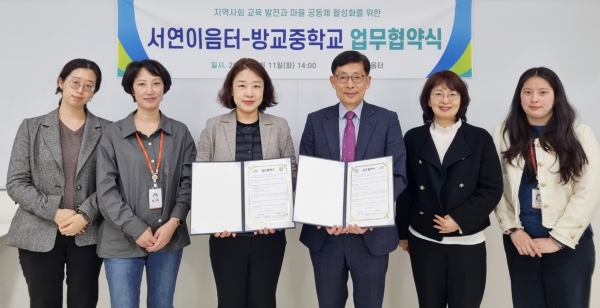 [충청뉴스큐] 화성시인재육성재단 서연이음터는 지난 11일 방교중학교와 지역사회 교육 발전과 마을교육공동체 활성화를 위한 업무협약을 체결했다.