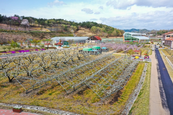 [충청뉴스큐] 과일의 고장 충북 영동군의 ‘랜드마크’, 과일나라테마공원의 과일꽃들이 만개하며 특별한 봄의 생동감을 전하고 있다.