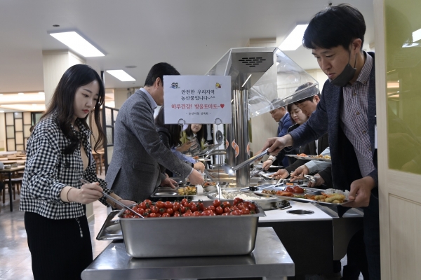 백성현 논산시장 역시 구내식당에서 직원들에게 신선한 방울토마토를 나눠주고 직접 맛을 보며 ‘방울토마토안전·건강식품’이라는 메시지를 전하고 있다.