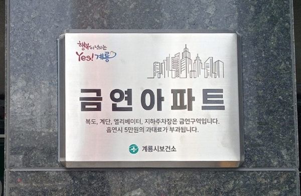 [충청뉴스큐] 계룡시 보건소는 지난 10일 관내 두마면에 소재한 ‘계룡푸르지오더퍼스트아파트’를 계룡시 제1호 금연아파트로 지정했다고 밝혔다.