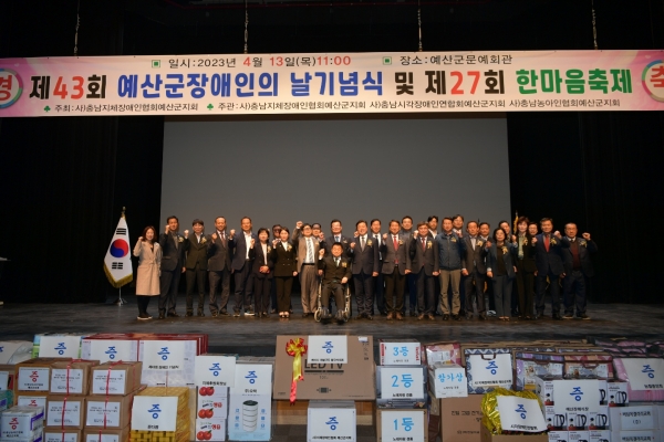 [충청뉴스큐] 예산군은 지난 13일 예산군문예회관에서 장애인의 날을 기념해 장애인과 비장애인이 하나되는 ‘제43회 예산군 장애인의 날’ 기념행사를 개최했다.