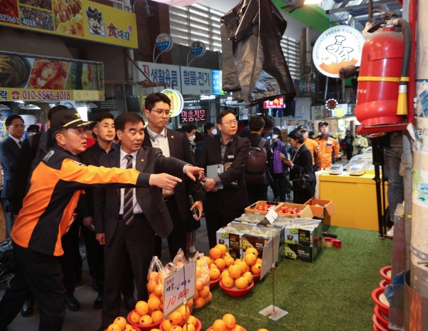 이날 염 의장 등은 시장 시설 전반과 화재안전 설비를 점검하고 상인회 회의실에서 조정경 회장, 함종국 수석부회장 등 시장 관계자들을 만나 민생현장의 고충과 건의를 경청했다.