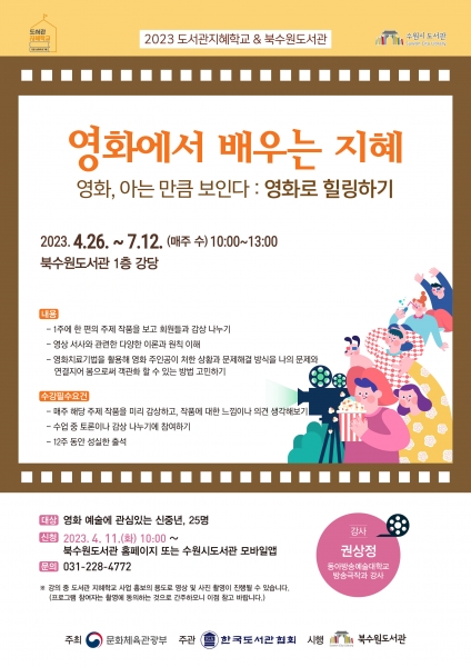 [충청뉴스큐] 수원시 북수원도서관이 ‘2023 도서관 지혜학교-영화에서 배우는 지혜’ 참가자 25명을 모집한다.