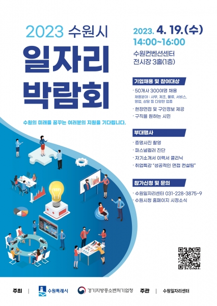 [충청뉴스큐] 수원시는 19일 오후 2시부터 4시까지 수원컨벤션센터 전시장 3홀에서 ‘2023 수원시 일자리박람회’를 개최한다.