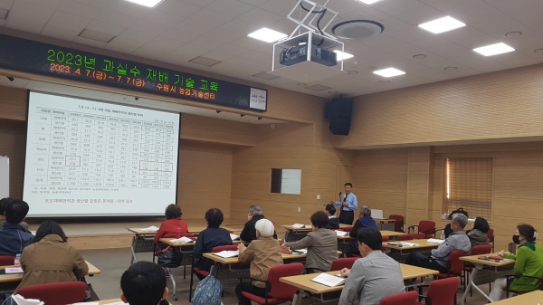 [충청뉴스큐] 수원시농업기술센터가 7월 7일까지 센터 대강당에서 ‘2023년 과실수 재배기술교육’을 연다.