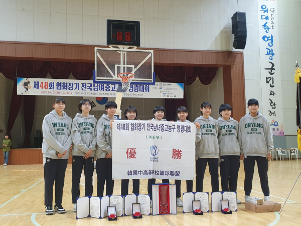 [충청뉴스큐] 온양여자중학교 농구부는 지난 4월 6일부터 전남 영광 스포티움에서 열린 제48회 협회장기 전국 남녀 농구대회 여중부에서 작년에 이어 2년 연속으로 우승하는 쾌거를 이루었다.