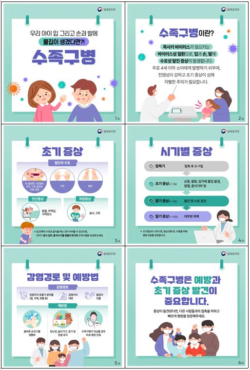 수족구병은 예방백신이 없어 올바른 손 씻기 등 철저한 개인위생 관리가 최선의 예방법으로 어린이집과 유치원, 수영장, 키즈카페 등 어린이들이 많이 모이는 곳에서는 소독 등 위생관리에 각별한 주의가 필요하다.