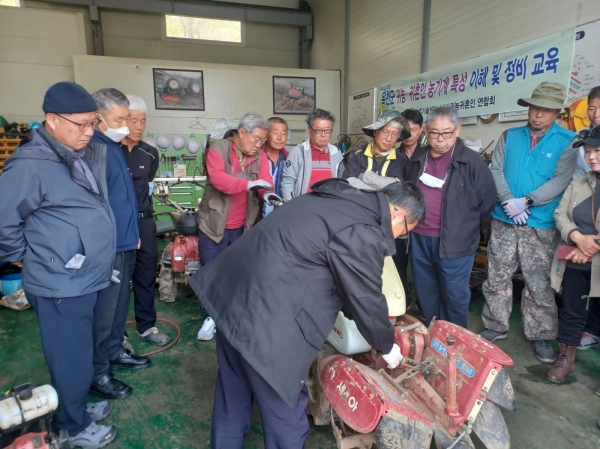 이번 교육은 옥천군과 옥천군귀농귀촌연합회가 귀농·귀촌인들이 농작업을 하다 농기계 정비교육만으로도 수리가 가능한 간단한 고장에도 불구하고 농작업을 할 수 없는 경우와 수리를 위한 수고로움을 해결하고자 마련했다.