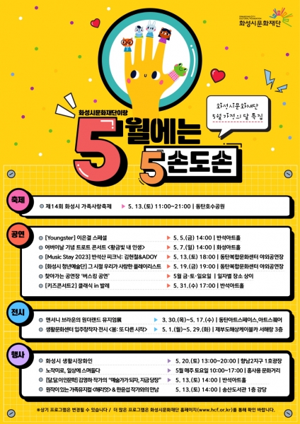 [충청뉴스큐] 화성시문화재단은 5월 가정의 달을 맞이해 공연, 전시, 축제 등 다양한 문화예술 프로그램을 개최한다고 밝혔다.