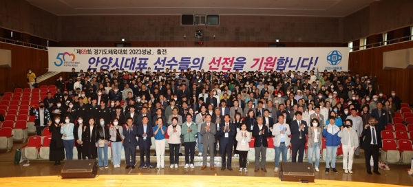 [충청뉴스큐] 안양시는 지난 15일 9시 시청 대강당에서 ‘2023년 시장기 종목별 체육대회 통합개회식 및 제69회 경기도 체육대회 출정식’을 갖고 필승 결의를 다졌다.