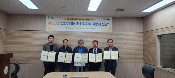 이날 지정서를 받은 한 기업 대표는 “예비사회적기업에 지정된 것을 매우 기쁘게 생각한다”며 “취약계층 일자리 제공 등 지역사회 발전에 보탬이 되도록 더욱 노력하겠다”고 소감을 밝혔다.