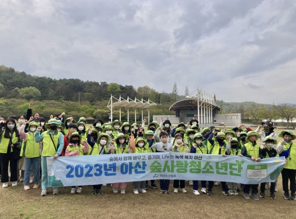[충청뉴스큐] 아산시가 운영하는 ‘2023년 아산숲사랑청소년단’이 지난 15일 신정호 남산근린공원에서 첫 숲 체험 활동을 시작했다.
