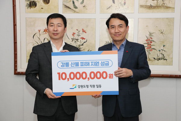 [충청뉴스큐] 4월 17일 강원도청 직원들은 강릉 산불 피해 지원을 위해 성금 1천만원을 강원도지사에게 전달했다.