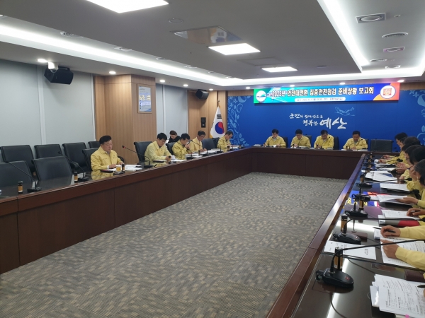 [충청뉴스큐] 예산군은 지난 17일 중회의실에서 최재구 예산군수 주재로 ‘2023년 안전대전환 집중안전점검 준비상황 보고회’를 개최했다.