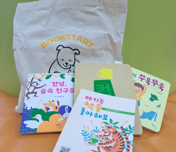 꾸러미에는 영·유아 단계별 맞춤 그림책 2-3권과 함께 북스타트 안내 책자, 에코백이 포함되어 있다.