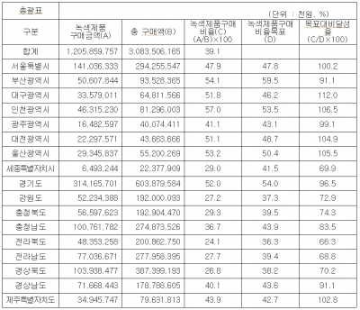 부산시 최대경 환경정책실장은 “공공기관은 상품구매에 있어 시장논리로만 접근할 수는 없다. 관련법령에서 녹색제품 개발지원과 의무구매 조항을 명시한 것도 그러한 이유”라며 “부산을 밴치마킹하고 있는 다른 시·도의 실적이 상승하고 있다는 데 자부심을 가지고 있다. 우리 부산시도 공공부문에서의 녹색제품 구매만큼은 지금과 같이 지속적으로 노력할 것”이라고 말했다.