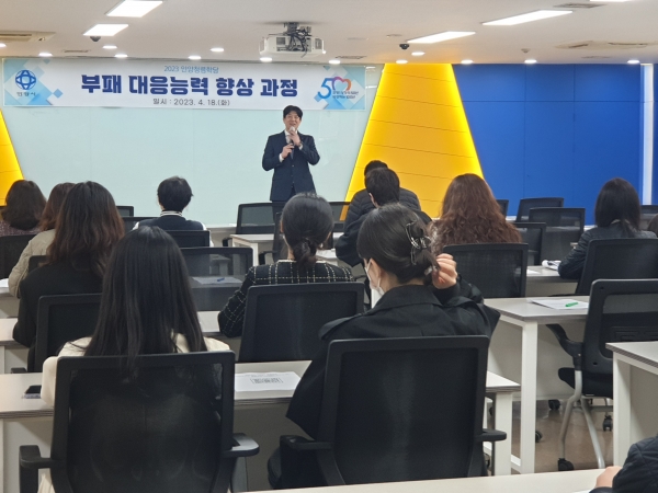 시는 18일 오전 10~12시, 오후 2시~4시 2차례에 걸쳐 안양청렴학당의 첫 번째 강좌인 ‘부패대응능력 향상 과정’을 열었다.