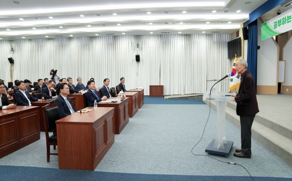 공부하는 공직문화 조성을 위해 민선8기 들어 9번째로 진행된 이번 아침강연은 윤여준 전 환경부 장관이 맡았다.