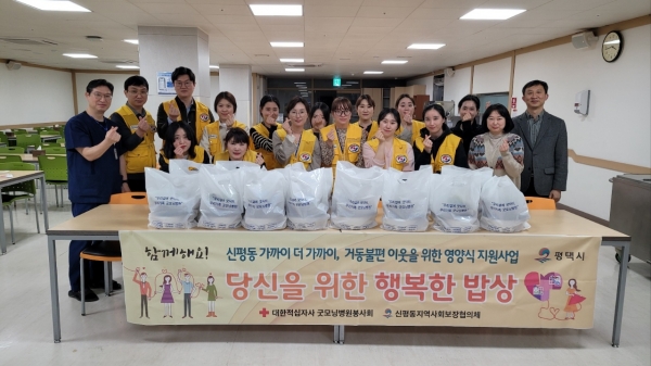 [충청뉴스큐] 평택시 신평동 지역사회보장협의체와 굿모닝병원봉사회는 지난 18일 거동이 불편한 복지 사각지대 이웃 15세대에 정성으로 마련한 영양식을 전달했다.