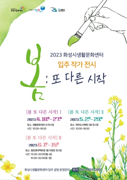 먼저 봄과 가정의 달을 맞이해 개최되는 입주창작자 상반기 전시 ‘봄: 또 다른 시작’은 화성시 중부, 서부, 동부로 찾아가는 순회전시 형식으로 열리며 규모가 순차적으로 확대될 예정이다.