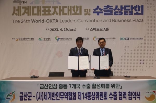 [충청뉴스큐] 금산군은 지난 19일 일본 도쿄에서 열린 세계한인무역협회 제24차 세계대표자대회 수출상담회에 관내 8개 업체가 참가했다고 밝혔다.
