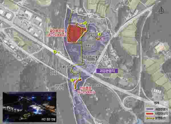 군은 이번 사업으로 기존 청소년 수련원, 캠핑장, 농업역사박물관, 생태학습장 등 단조로운 시설과 노후화되고 집객력 한계에 도달한 괴강관광지 내에 차별화된 관광 콘텐츠를 개발할 계획이라고 전했다.