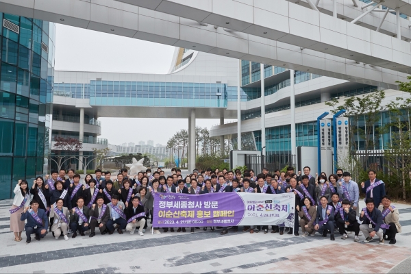 [충청뉴스큐] 박경귀 아산시장과 공직자들이 21일 정부세종청사에서 아트밸리 아산 제62회 성웅 이순신 축제 홍보 활동을 펼쳤다.