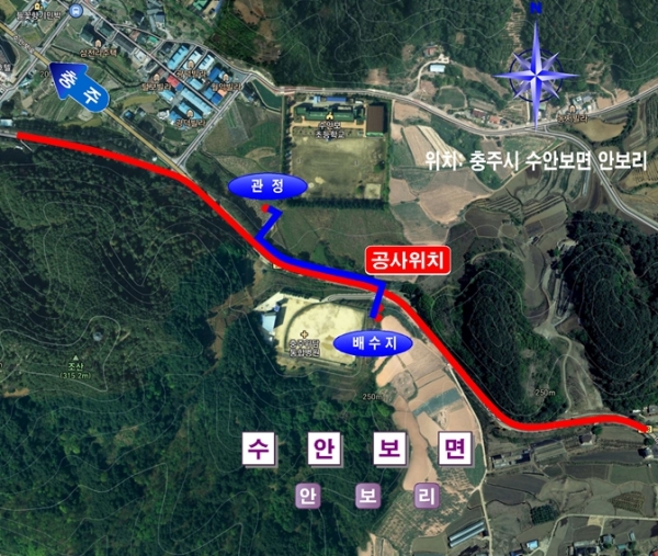 온천수 공급 기반시설은 수안보면 안보리 591-11번지 외 2필지 일원에 총면적 433제곱미터 부지에 배수지 250톤 2지, 온천수 공급관로 관경 150미리, 연장 1,200미터를 부설할 계획이라고 전했다.