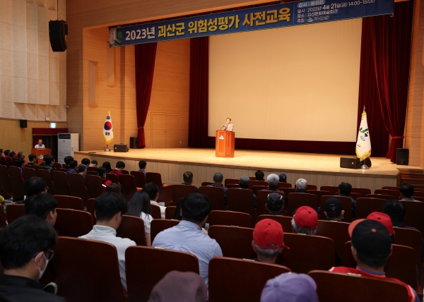 [충청뉴스큐] 충북 괴산군은 21일 괴산문화예술회관 대강당에서 사업장 내 중대산업재해 사고 발생의 주요 원인이 되는 유해·위험요인을 사전에 발견해 예방, 개선할 수 있도록 안전보건관리 담당 공무원 등 250여명을 대상으로 위험성평가 사전교육을 실시했다.