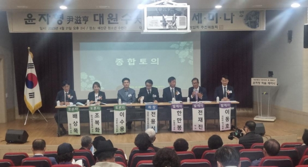[충청뉴스큐] 예산군은 지난 21일 예산군청소년수련관에서 오가면 원천리 출신 항일독립운동가 ‘오정 윤자형 선생’ 학술세미나를 개최했다.