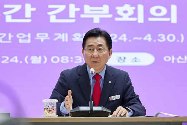 [충청뉴스큐] 박경귀 아산시장이 예산 부서에 사업 평가 및 분석팀을 만들고 예산 편성 전 사업 타당성을 심층 분석하는 체계를 정립하겠다고 24일 주간 간부회의에서 밝혔다.