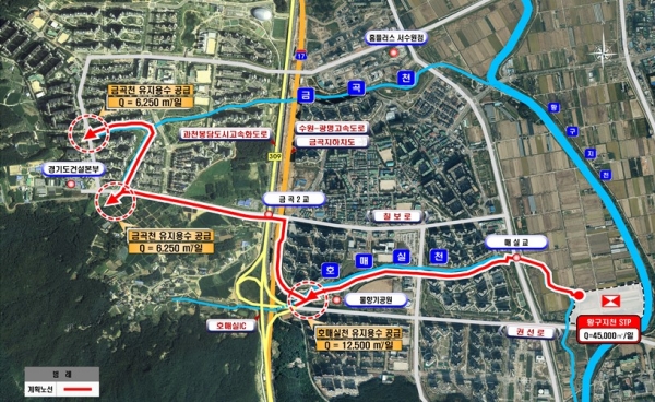 애초에는 하수처리시설에서 정화한 방류수를 하천 하류로 배출할 계획이었지만, 금곡천과 호매실천에 재이용수를 방류하는 것으로 계획을 변경해 사업을 추진하고 있다.
